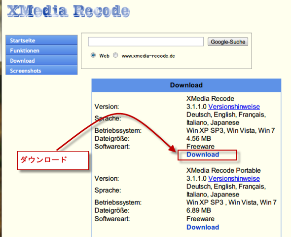 【ダウンロード】http://www.xmedia-recode.de/download.html