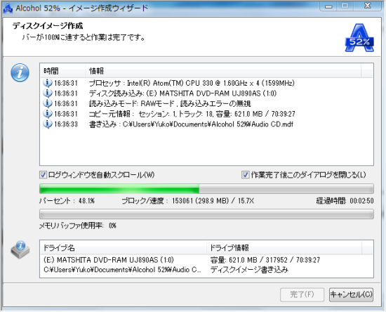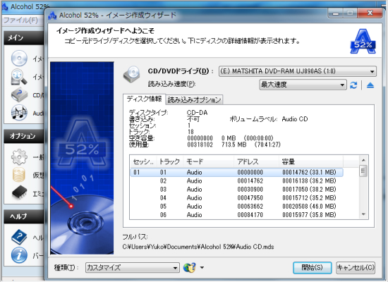 イメージフォーマットは、mds,ccd,cue,から選びます。