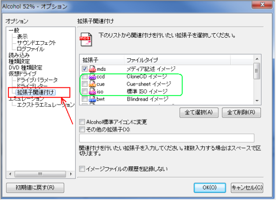 仮想ドライブには、拡張子関連付けという項目がありますから、追加したい拡張子などは、拡張子関連付けで設定します。