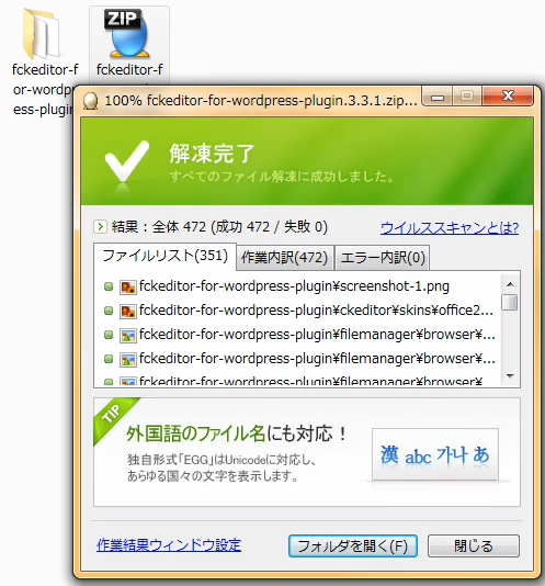 圧縮ファイルと解凍先フォルダが同じ名前なので、わかりやすいですし、もし、中身がバラバラのファイルでも散らばらずに1箇所に解凍できるのでおすすめです。