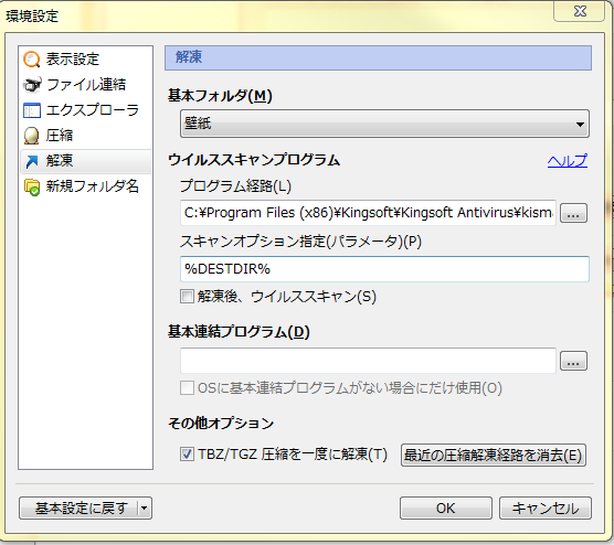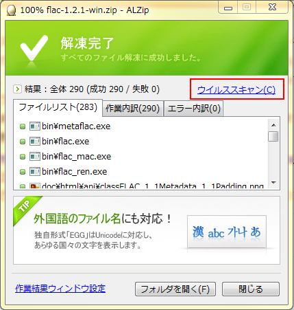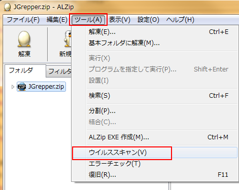 ALZipで解凍した際に、ウィルスチェックソフトを呼び出して、ウィルススキャンをさせることができます。