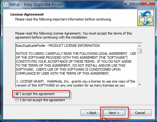 License Agreementです。使用許諾に同意します。Nextをクリック。