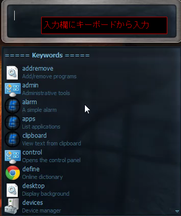 キーボードからプログラムのキーワードを入力すれば、探してくれるしくみです。