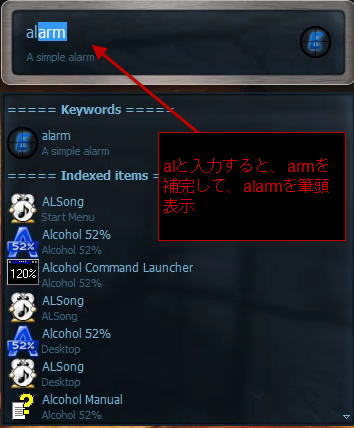 alsongを呼びだそうと、alと入力