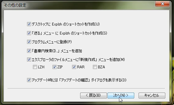 「Explzh(エクスプローラエルゼットエッチ)」は、ファイルをダブルクリックしての一発解凍やドラッグ&ドロップでの解凍&圧縮、またパスワードをかけたZIPファイルの作成等の通常の圧縮解凍作業をこなします。