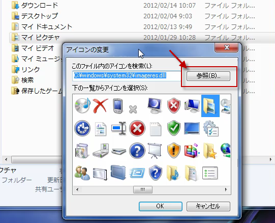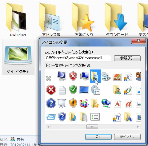 このデフォルトのアイコンの場所が、C:\Windows\system32フォルダに有り、Windows7なら
