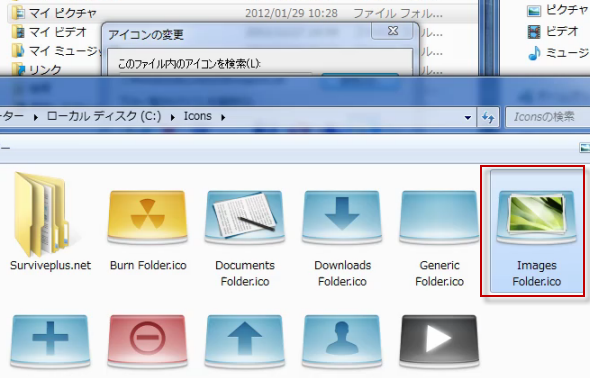 予め、利用したいアイコンは、このフォルダにいれてあります。