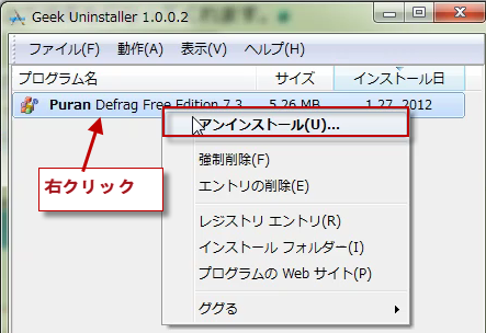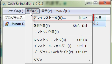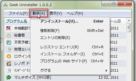 GeekUninstallerの動作