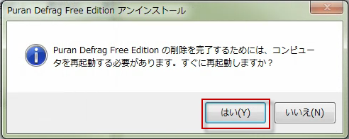 再起動するとアンインストールと完全削除は完了です。