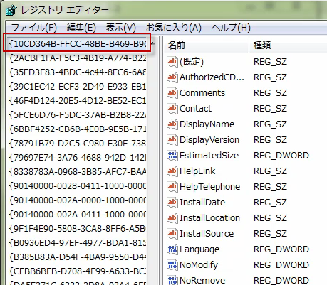 また、GeekUninstallerをつかって、アプリケーションのレジストリを開いてみましょう。