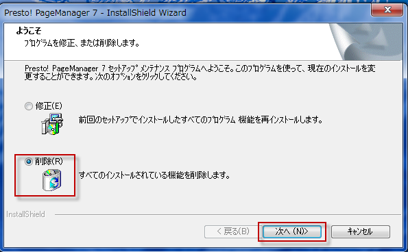 アンインストールプログラムのアンインストーラーが起動するので、通常通りアンインストールします。