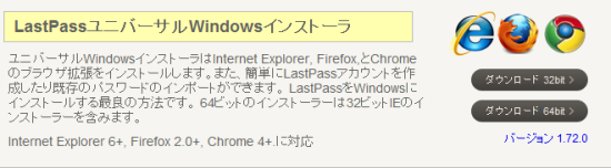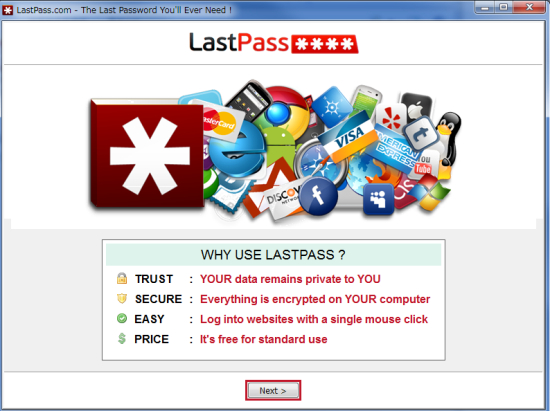 LastPass ダウンロード&インストールクラウド型のパスワード入力支援ソフト、複数のブラウザで同じデーターを共有