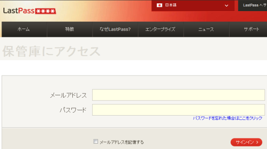 ラストパスの保管庫にログインします。