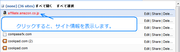 クリックすると、サイト情報を表示します。