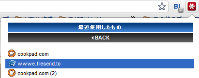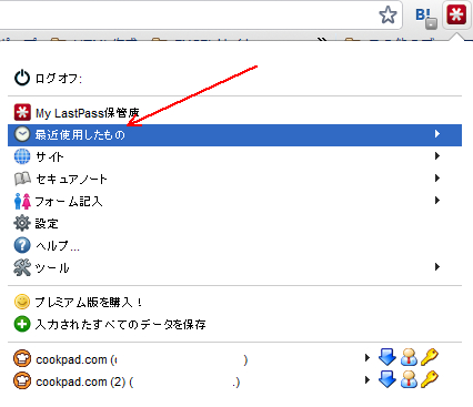 最近使用したものをクリックすると、パスワードを入力したサイトの一覧が表示されます。