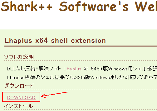 「Lhaplus x64 shell extension」をダウンロードします。
