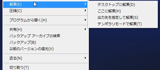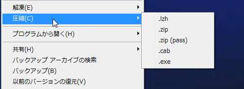コンテキストメニュー(右クリックメニュー)に解凍、圧縮メニューが表示されないのです。