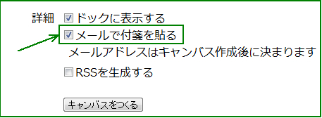 「メール付箋を作成できるようにする」にチェックを入れておきます。すると、メール送信で付箋の貼り付けができるようになります。