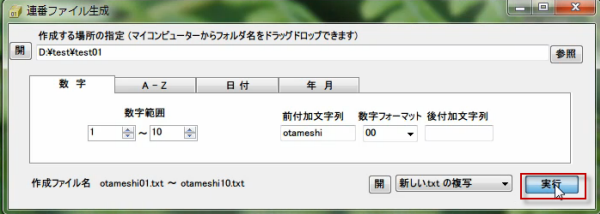 今度は、連番ファイルを作成します。