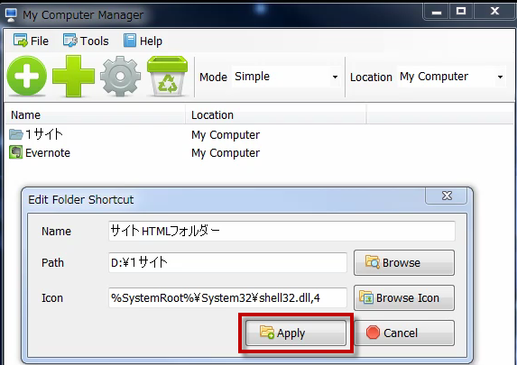 My Computer Managerは、 マイ コンピュータ やコントロールパネルに、任意のファイルや フォルダ を登録できるようにするソフトです。