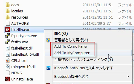 すると、右クリックメニューに「Add to MyComputer」と「Add to Control Panel」が表示されるようになります。