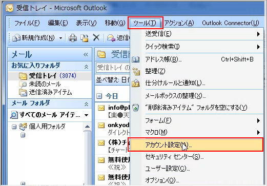 Outlook ExpressやOutlook の 設定済みのパスワードは、伏字で表示されています。