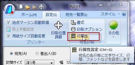 設定タブをクリックし、行属性をクリック。行属性の設定を開きます。
