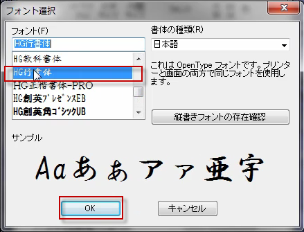 フォント選択画面です。フォントを指定して、OKをクリックします。