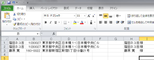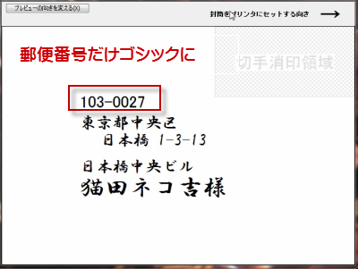 郵便番号まで行書体に変更する必要はないので、ゴシックに戻しました。