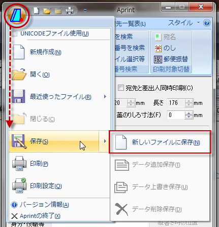 Aprintでは、宛先ファイル・差出人ファイルの二種類のファイルを別々に保存します。