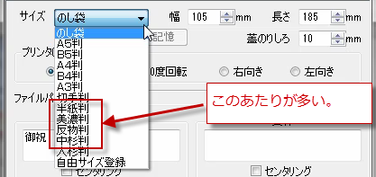 のし紙は、決まったサイズが11種類用意されているので、選びます。