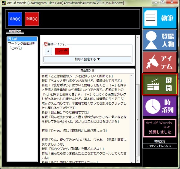 ArtOfWordsは、小説などの文章を書くために特化したエディタです。