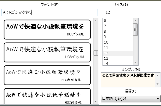 フォント設定ダイアログの外側をクリックすると、現在の選択を保存して、戻ります。