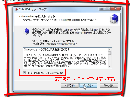 次に、CubeToolbarのインストール画面が表示されます。
