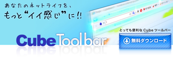 Cubeツールバーは、インストールしていないという人は、http://www.cube-soft.jp/cubetoolbar/ からダウンロードしてください。