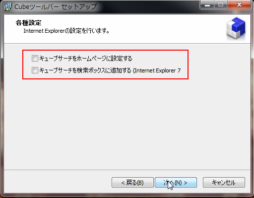 インストールの際に、Cubeツールバーのインストールを選択するという画面があり、インストールしても損はないということで、管理人的には、インストールをおすすめしています。