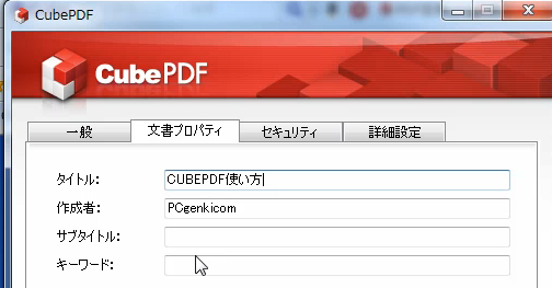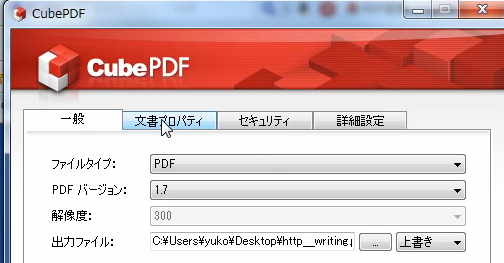 すると、CubePDFが立ち上がりますので、必要な設定をします。