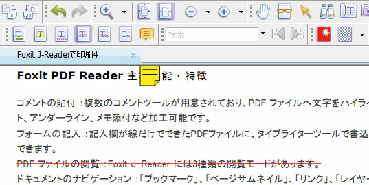 PDFテキストに「ハイライト」「取り消し線」「下線」「スタンプ」をつけるには、コメントツールバーを表示させると便利です。