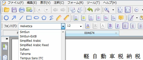 タイプライターツールをクリックすると、同時にフォントとサイズのツールが表示されるので、文字種を日本語文字にし、フォントも必要な大きさに調整します。