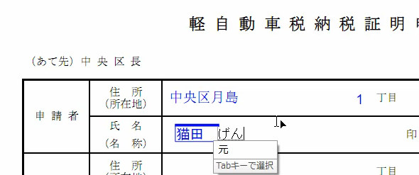申請書への文字入力