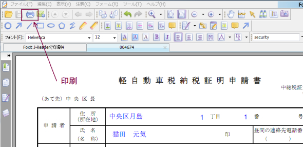 ダウンロードしたPDF申請書等をFoxit J-Readerで表示します。