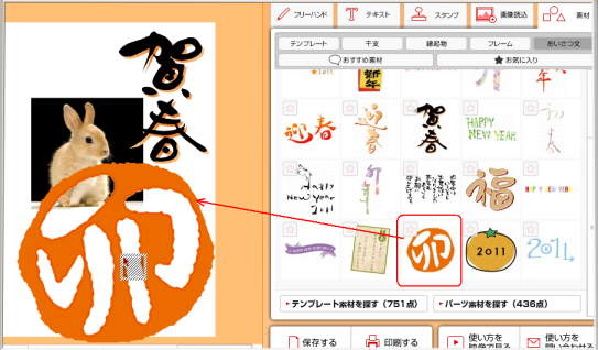 【ダウンロード】http://www.yubin-nenga.jp/design_kit/index.html