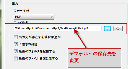 保存先を既存のPDFファイル・フォルダに設定しました。