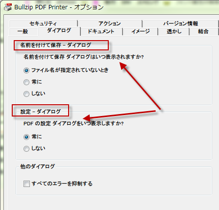Bullzip PDF Printerのオプション設定