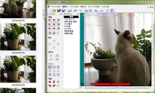 画像は、リサイズしたり透過や回転、自動整列などが行えます。