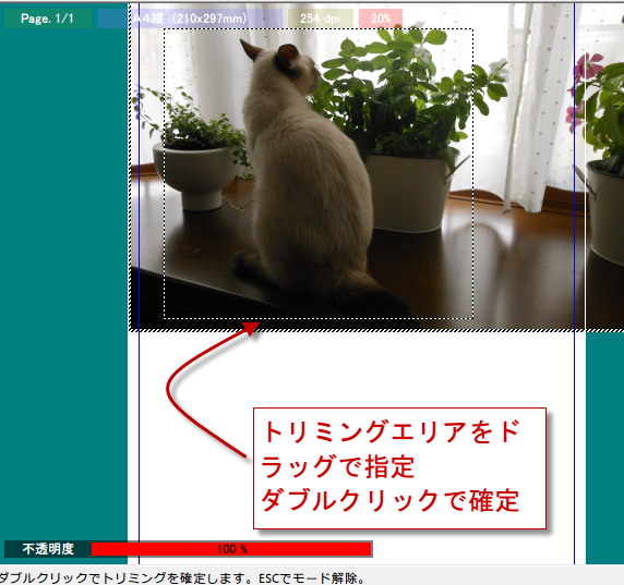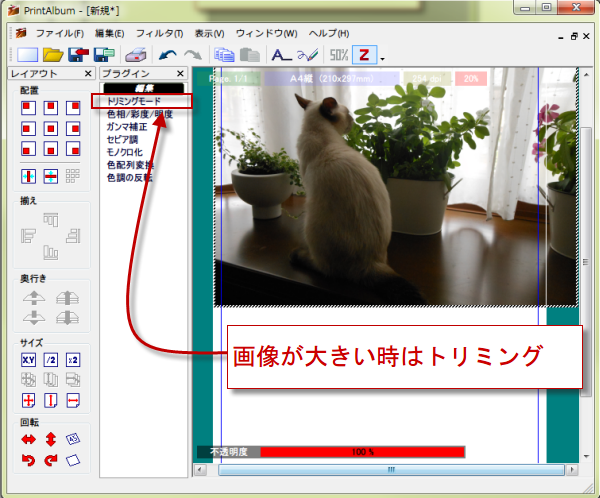 1/2にしても、まだ画像が大きいので今度は、トリミングをクリックして、周りをトリミングすることにします。