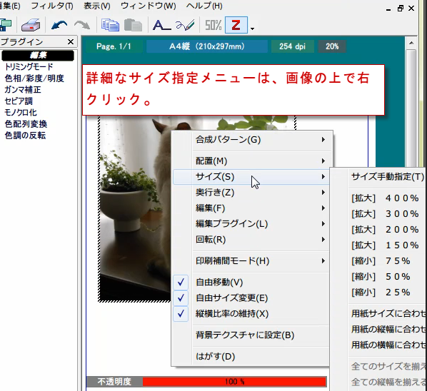 画像の上を右クリックで表示されるメニューはとても豊富です。