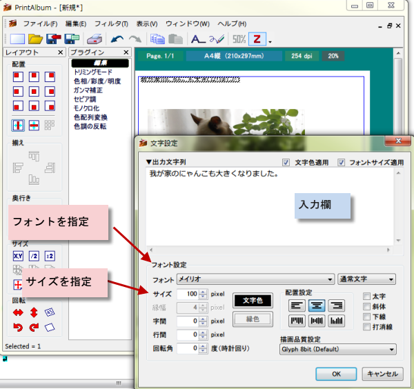 Print Albumのアルバムに文字列を挿入