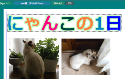 このページでは、Print Album で作成した用紙に文字列のタイトルを挿入し、