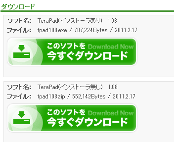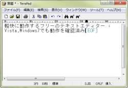 私は、Window7にしてからも、古いTeraPad(tpad093)を愛用してましたが、今ではVer.1.08 (2011/02/17)までバージョンアップしていました。